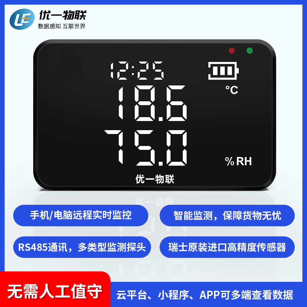 S200R RS485產(chǎn)品系列是一款安裝在固定場(chǎng)所的有線溫濕度記錄儀,高清全屏LED顯示,可視距離遠(yuǎn),高精度,大存儲(chǔ)容量,配套支架安裝。 廣泛應(yīng)用于農(nóng)業(yè)、食品、醫(yī)藥、化工、電子、實(shí)驗(yàn)室等在線監(jiān)測(cè)系統(tǒng)中,該記錄儀采用瑞士原裝進(jìn)口一體式傳感器,內(nèi)置充電鋰電池,支持外電供電充電,超低功耗,且都支持外置可調(diào)聲光報(bào)警器。