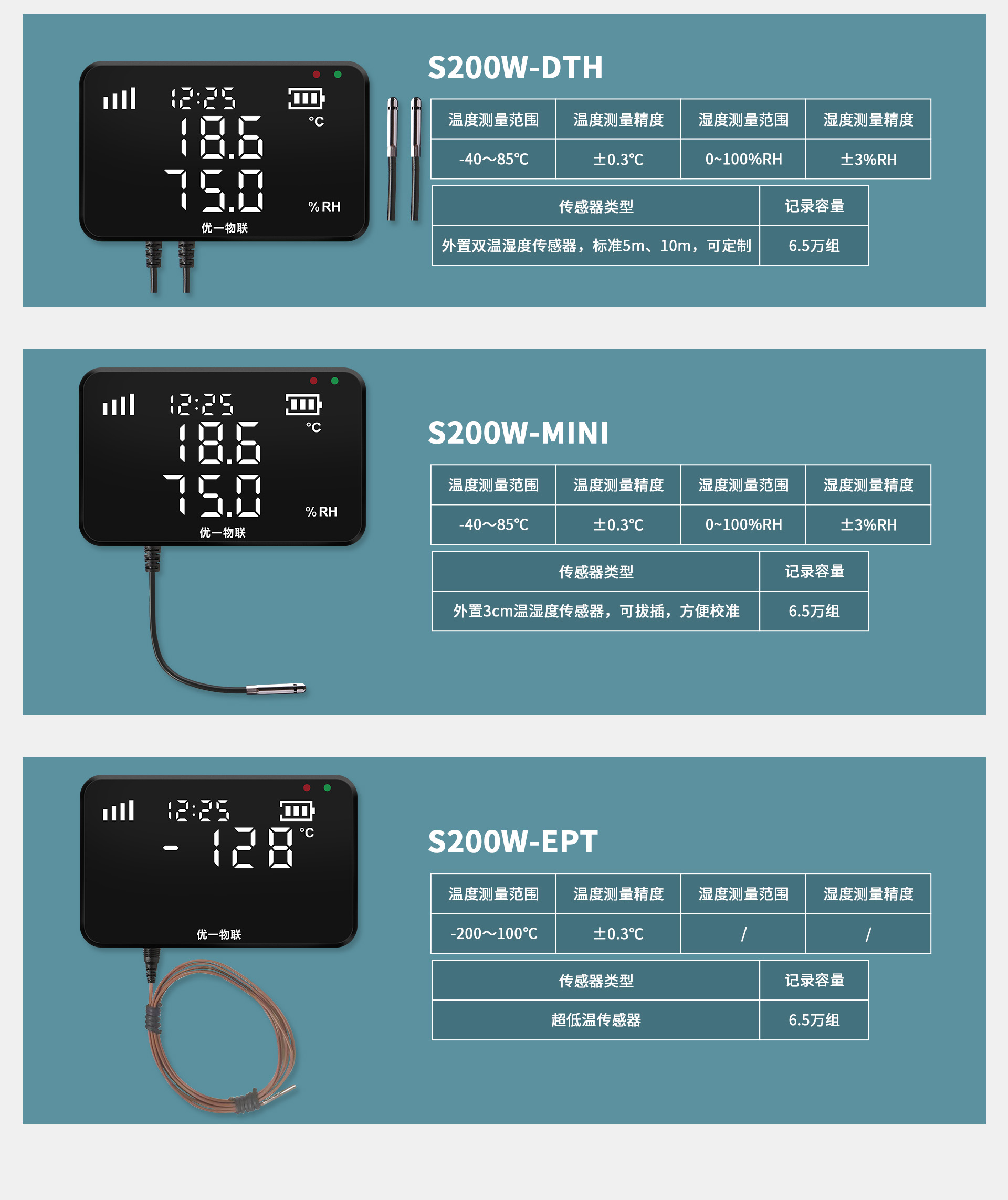 S200W WIFI產(chǎn)品系列是一款安裝在固定場所的無線溫濕度記錄儀,高清全屏LED顯示,可視距離遠,高精度,大存儲容量,配套支架安裝。 廣泛應用于農(nóng)業(yè)、食品、醫(yī)藥、化工、電子、實驗室等在線監(jiān)測系統(tǒng)中,該記錄儀采用瑞士原裝進口一體式傳感器,內(nèi)置充電鋰電池,支持外電供電充電,超低功耗,且都支持外置可調(diào)聲光報警器。